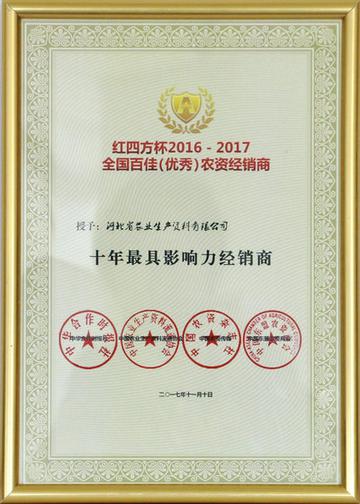 全國百佳(優(yōu)秀)經(jīng)銷商“十年最具影響力經(jīng)銷商”