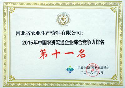 中國農(nóng)資流通企業(yè)綜合競爭力排名第11名