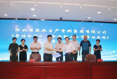 本網(wǎng)訊 8月2日上午,集團(tuán)公司在農(nóng)資大廈第一會(huì)議室舉行《集體合同》、《工資集體合同》簽訂儀式,企業(yè)方與職工方協(xié)商代表、監(jiān)督檢查小組成員、勞動(dòng)爭(zhēng)議調(diào)解委員會(huì)成員、集團(tuán)公司職工代表出席。雙方首席代表,集團(tuán)公司董事長(zhǎng)、總經(jīng)理李平現(xiàn),集團(tuán)公司工會(huì)主席鄭占山分別代表企業(yè)方和職工方在《集體合同》、《工資集體合同》文本上簽字。集團(tuán)公司黨委副書(shū)記彭國(guó)江主持。