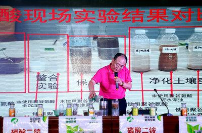 王震詳細介紹了聚谷氨酸二銨產品的研發(fā)過程、適應作物品種、功能特點、使用方法及使用效果。聚谷氨酸二銨具有超強親水性與保水能力,能夠促進磷肥與中微量元素吸收,平衡土壤酸堿值,螯合土壤中有毒重金屬,增強作物抗病及抗逆境能力,達到促吸收、保水分、調酸堿、保豐收的效果。通過聚谷氨酸新型二銨使用效果對比和各項數(shù)據測試表明,肥料作用明顯,達到了為農民降低成本、增產增收的目的。現(xiàn)場實驗更是讓與會者直觀感受到聚谷氨酸二銨的強大功效,幫助大家對產品有了更清楚的了解。