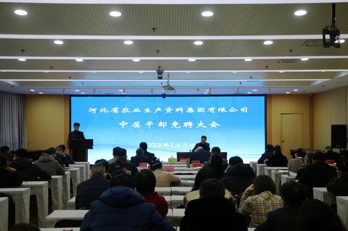 本網(wǎng)訊    為深入落實(shí)集團(tuán)公司“一主兩翼”發(fā)展戰(zhàn)略,進(jìn)一步完善集團(tuán)公司體制機(jī)制,凝聚干事動(dòng)力,激發(fā)創(chuàng)新活力,2022年1月5日,河北省農(nóng)資集團(tuán)公司在河北農(nóng)資大廈召開2022年度中層干部競(jìng)聘大會(huì)。集團(tuán)公司常務(wù)副總經(jīng)理馬朝輝主持會(huì)議,全體班子成員和職工參會(huì)。
