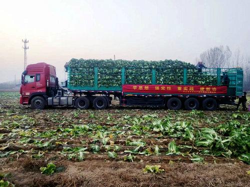 集團(tuán)公司裝滿大白菜的車輛整裝待發(fā)
