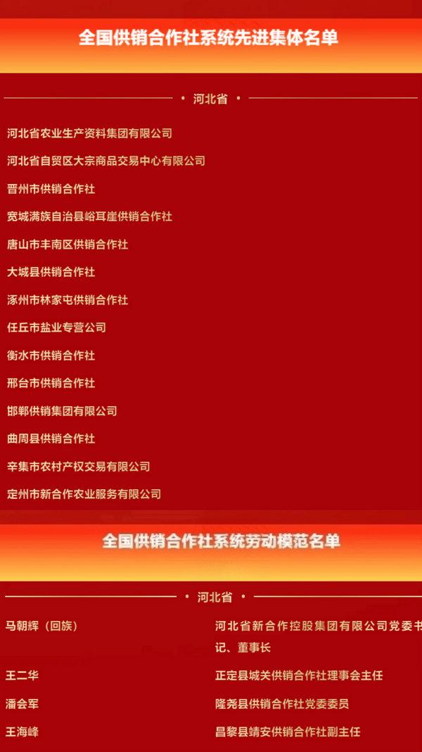 喜報(bào)|河北省農(nóng)資集團(tuán)榮獲兩項(xiàng)全國(guó)表彰