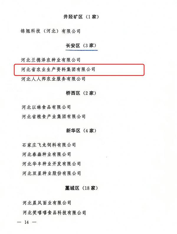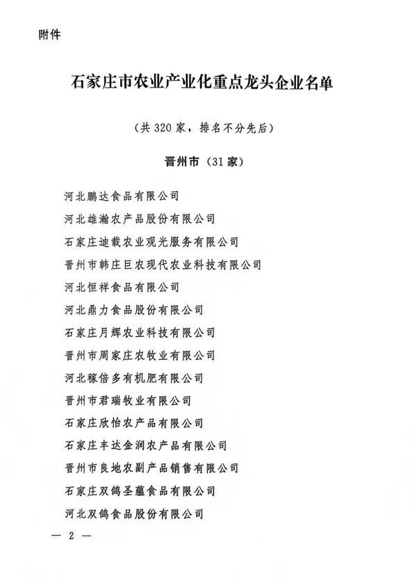 石家莊市農業(yè)產業(yè)化重點龍頭企業(yè)名單