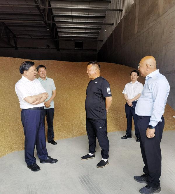 韓俊來到延津縣帝益麥種業(yè)公司,了解小麥新品種選育及推廣情況,鼓勵公司與科研機構(gòu)建立協(xié)同創(chuàng)新機制,加快品種創(chuàng)新攻關(guān),培育更多高產(chǎn)、抗逆、廣適的優(yōu)良品種,搞好成果轉(zhuǎn)化,把好品種盡快推廣開。他還來到克明面粉有限公司,調(diào)研小麥加工及產(chǎn)業(yè)發(fā)展情況,強調(diào)要做好“糧頭食尾”增值文章,聚焦市場需要開發(fā)適銷對路的產(chǎn)品,延伸產(chǎn)業(yè)鏈條,發(fā)展產(chǎn)業(yè)集群,全鏈條推動糧食產(chǎn)業(yè)高質(zhì)量發(fā)展。